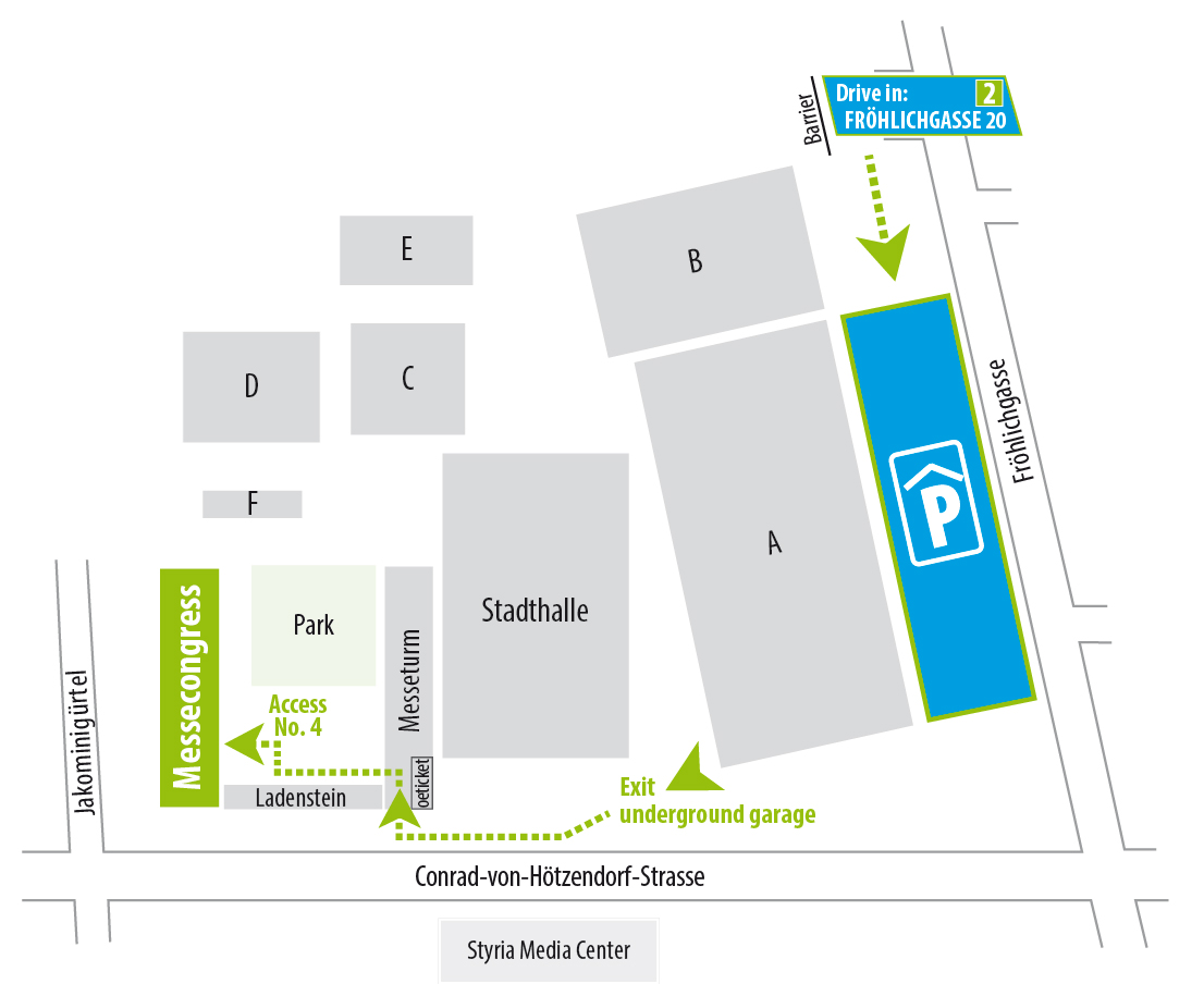 Wenn Sie mit dem Auto kommen, können Sie die Tiefgarage der Stadthalle/Messe Graz während beider Konferenztage gratis nutzen.